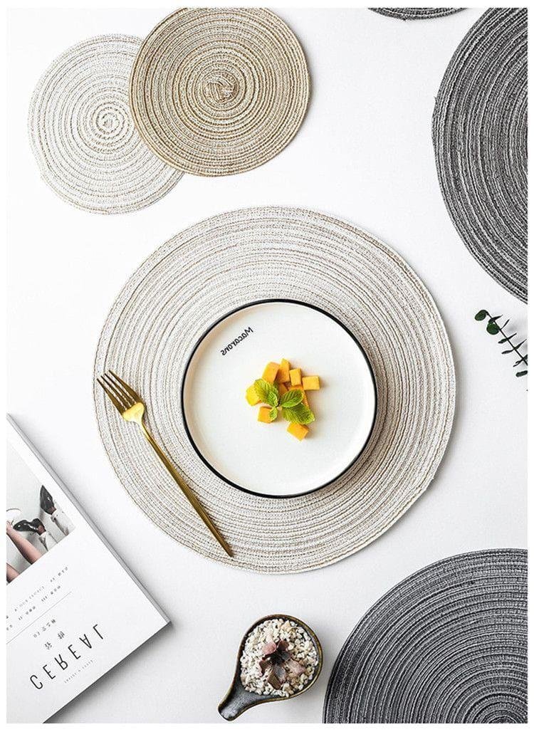 Round Design Table Ramie Insulation Pad Solid Linen Non Slip Table Mat Kitchen Decoration Home Pad Couster