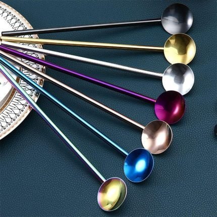 Eid / Party Mirror Surface Fruit Juice Mixing Rod Straws Multiple Colors Stainless Steel Drink Tool Bar Tea Straw Spoon Creative